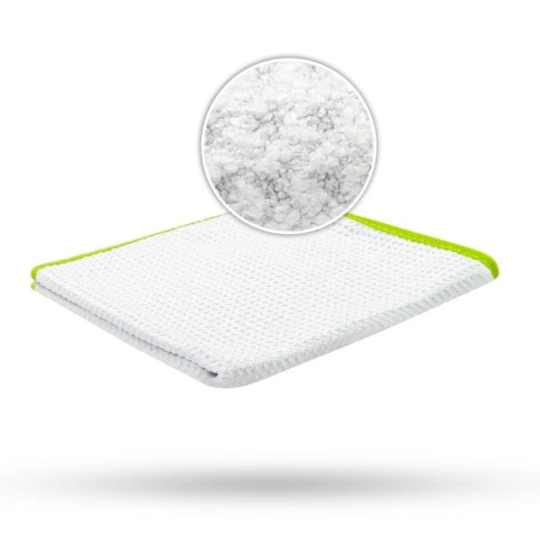 Die Spezielle Waffelstruktur ist für eine extrem schnelle Aufnahme aller Flüssigkeiten auf Oberflächen geeignet, ohne dabei Fasern und Fussel zu hinterlassen.